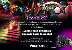 Una vez finalizada la cena espectáculo, habréis conocido a otros grupos y podréis pasar todos a la pista de baile. La película continúa toda la noche!
